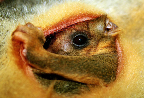 Щеткохвостый опоссум выглядывает из сумки матери в ветеринарной клинике в Сиднее, Австралия. Детеныш живет в сумке до 5-6 месяцев. (Leanne Cooper / AFP - Getty Images)