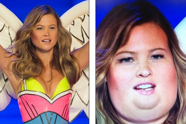 Все мы привыкли считать моделей Victoria's Secret образцом стройности. Сайт feeldesain.com создал незатейливую серию работ, в которой представил, что было бы если бы знаменитые модели Victoria's Secret поправились на 45 кг.