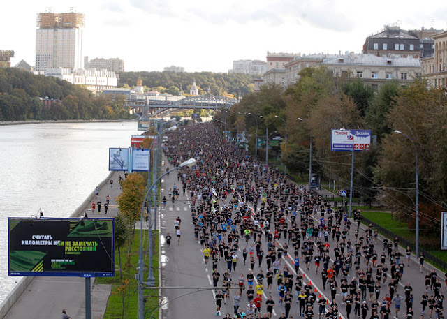Run Moscow - это ежегодное мероприятие, которое собирает огромное количество фанатов бега со всей Москвы, а если честно, я думаю, что и России. Огромную площадь занимают шатры регистрации участников, регистрация длится почти 4 часа, в итоге на забег регистрируется почти 30000 человек. Я что-то слабо себе представляю, что даже на футбол у нас в России иной раз собирается такое количество болельщиков, а ведь на футболе нужно просто смотреть и кричать ( болея за команду, которая тебе нравится ). Здесь же надо бежать, бежать 10 километров по центру Москвы, не в самой благоприятной экологической обстановке. Легкие, которые снабжают мышцы кислородом очень быстро устают, в следствие чего бежать становится трудно буквально через несколько минут. Получается, что нужно бежать против себя, против нехватки кислорода, против боли в ногах, против времени и против расстояния в 10 км. Здесь неважно откуда ты стартовал, важно как ты бежишь, у каждого участника на груди есть номер, в который вшит датчик телеметрии, которая включается в момент пересечения линии старта и финиша. Старт! И перед тобой только ты сам.