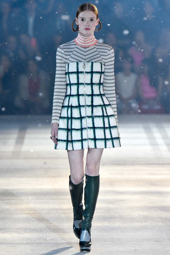В коллекции Esprit Dior слились Восток и Запад. Пайетки соседствуют тут с классическими платьями и меховыми пальто. Моделей также украшал макияж с использованием страз. Симонс, как всегда, удивил сложным кроем при кажущейся простоте. Показ закончился вечеринкой, устроенной прямо там же на арене.