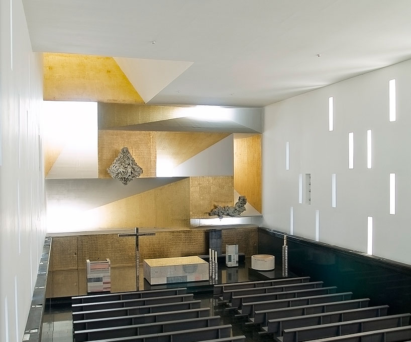Церковь Santa-Monica в Мадриде выглядит как современная инсталляция благодаря своим вытянутым проемам окон. Авторы дизайна испанская студия Vicens and Ramos.