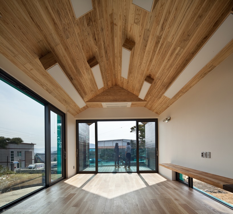 Корейская дизайн студия ON Architecture разработали яркий проект частного дома в южно-корейском городе Кимхэ. По заказу клиента авторы должны были сделать дом с обзором городского пейзажа. Дизайнеры выполнили эту задачу построив центральную часть дома в виде небольшой смотровой башни.